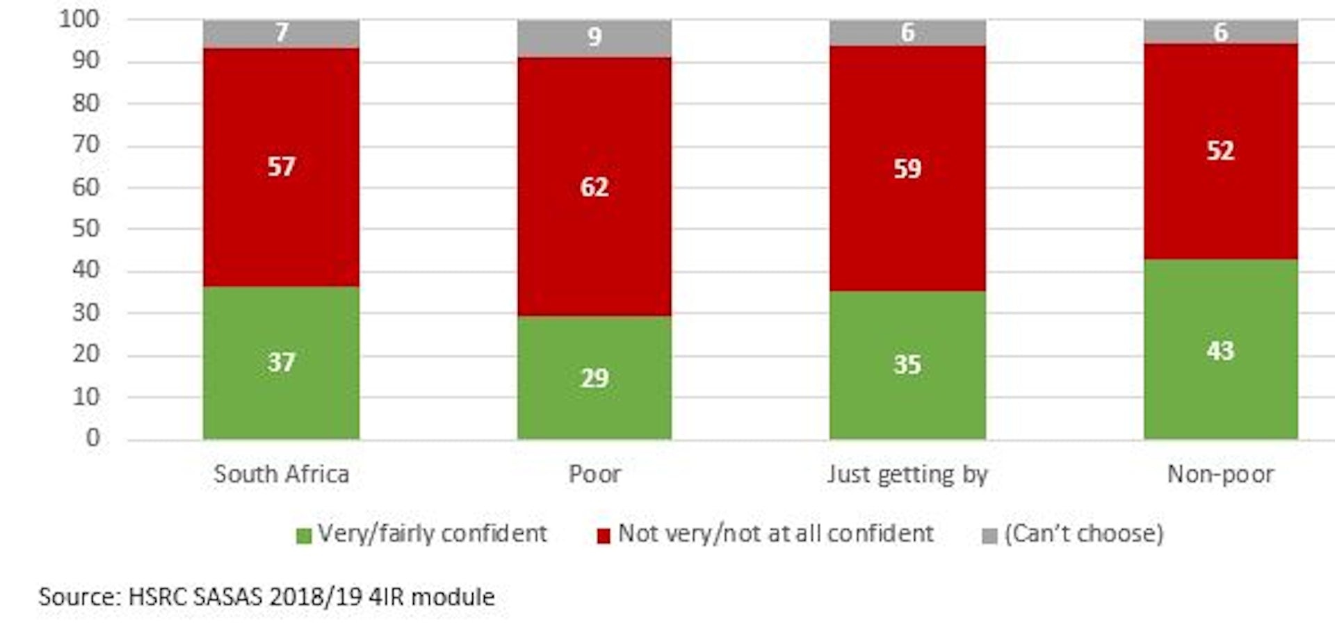 At this stage, the public is fairly pessimistic about the ability of government to minimise the human costs of the fourth industrial revolution. Ongoing dialogue between various sectors, such as at the recent inaugural Fourth Industrial Revolution SA Digital Economy Summit in South Africa, are needed to promote new insights and develop responses. There should also be campaigns to inform the public about technological change and the planned response for the country.![]()