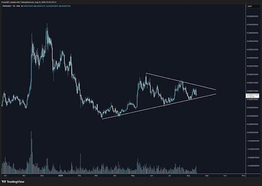 PEPE managed a 21% weekly run-up, but now it’s trapped under $0.000015 resistance. Current levels around $0.000011 leave bulls hoping for a breakout toward $0.000017, but overbought conditions suggest another cooldown first.