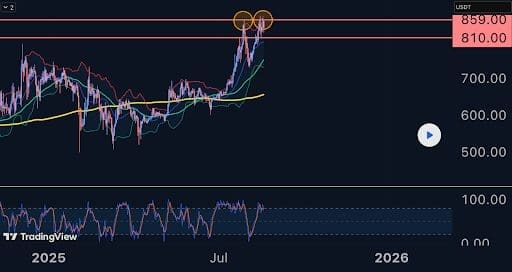 BNB price prediction models are aligning around a bullish September 2025 outlook. The technical momentum is seen to be strong as the BNB is trading comfortably above its moving averages. The move above $869 resistance is considered as the key driver and the next upside area would signal to $940 and then a last hurrah up to the psychological $1,000.