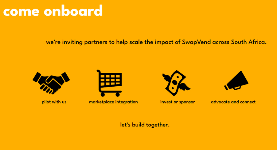 Already described as a “digital taxi” for its ability to transport township traders into the digital economy, SwapVend is reimagining inclusion by creating a platform that requires no startup capital, and no digital fluency to participate, only ambition.
