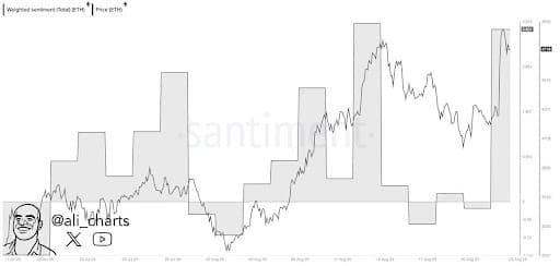 Experts have revealed that Ethereum is seeing a surge in positive sentiment on social media. Machine learning forecasts also predict a near-term move above $5,200, with some models suggesting the run could reach $5,800 by month-end.