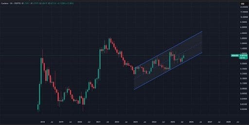 On the narrative side, a widely shared community chart flags a bullish monthly channel with a potential next waypoint near $2.50 if momentum holds. In the short term, that doesn’t have to play out immediately for $1 to come into view; it just underlines that dips keep getting bought and higher targets exist if trend strength continues.