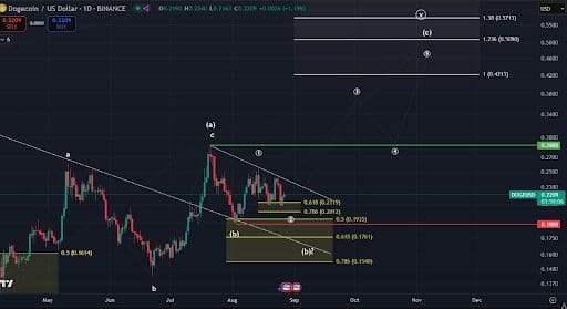 Technicians highlight a key support area near $0.20. A clean break above a descending trend line would be an early tell that a new wave higher is starting, but until that triggers, price may chop. This means that DOGE can still run, but the road to $1 is longer than ADA’s right now.