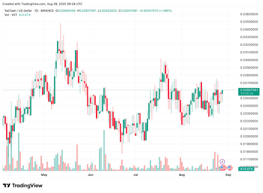 VeChain trades at $0.026, a price echoing its enterprise-based model rather than speculative predictions. With popular luxury goods, pharmaceuticals, and agriculture brands utilizing its solutions, VeChain continues to create a supply-chain-focused network.