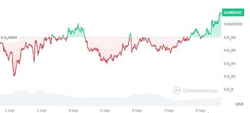 PEPE coin price remains highly volatile and price-sensitive to social flows. Recent data shows the token trading in the sub-$0.00001 range with sharp percentage swings.