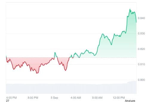 The VeChain (VET) token is currently priced at $0.02390, representing a nearly 2.67% increase in recent days. The amount of trade executed within 24 hours is about $45.89 million. Moreover, the market capitalization is near $2.1 billion USD in September 2025.