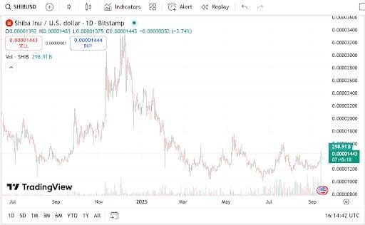 Shiba Inu is currently trading at $0.00001459, with a market cap of $8.59 billion. Over the past day, trading volume surged by 134.83% to reach $562.73 million, showing that SHIB price movements continue to attract heavy interest. For many investors, the latest spike demonstrates the meme coin’s ability to generate excitement even in quieter market phases.