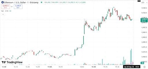 Ethereum sits at $4,500, consolidating after a slight drop from a critical resistance. Analysts noted that growing ETF inflows and declining exchange balances might push ETH toward $5,000, a milestone not seen since August.