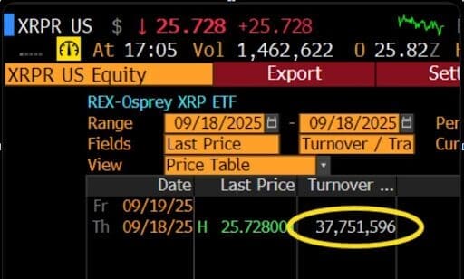 XRP ETF News: First U.S. XRP Fund Records a $37.7M Debut