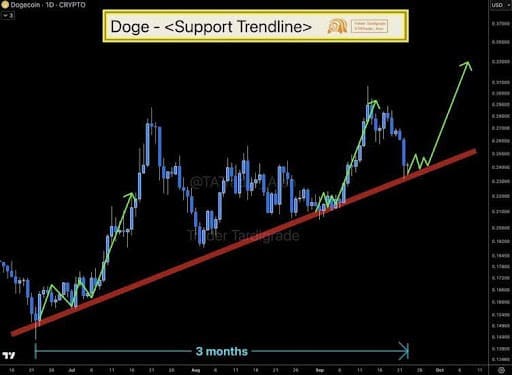 Dogecoin enters Q4 at a critical stage. Prices hover between $0.10 and $0.25 after falling more than 20% last month. While whales are accumulating again, the coin is still down 85% from its 2021 peak of $0.7376.