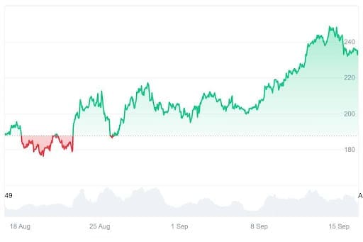 The Nasdaq-listed firm plans to scale its Solana holdings over 12–24 months, using staking and lending to boost shareholder value. With Solana’s 7% yield compared to Bitcoin’s zero-yield model, analysts see the treasury move driving greater adoption, institutional demand, and price momentum. Infact, SOL has already risen by 22% monthly following the Solana news.