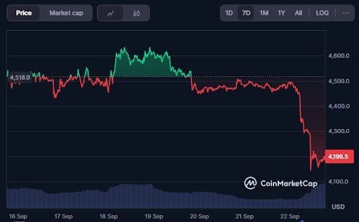 Ethereum is still in chatters in the market, but not for the reasons investors hoped. On September 22, 2025, crypto markets saw $1.7 billion in liquidations. Surprisingly enough, ETH alone took a $506 million hit. The Ethereum price has slipped by over 7% in a week. Sitting above $4,500 at one point, ETH now struggles around $4,200.