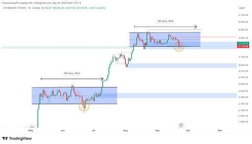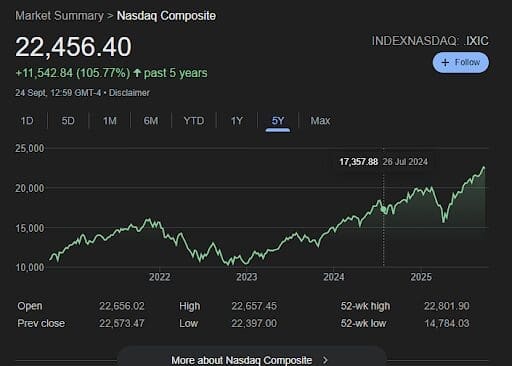 The NASDAQ composite pushed to new highs at 22,657 in September, underlining investor appetite to bet heavily on medium term risk. In the same breath, Ethereum continues to attract institutional money even as Q3 winds down with BlackRock’s ETHA fund managing $9.3 billion while Fidelity’s FETH added $2.2 billion in Q3, signaling confidence hasn’t wavered.