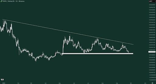 This weakness has left the Pepe Coin price hovering near the critical $0.00000940 support level. Analysts say this zone will determine whether a rebound is possible or if sellers force deeper losses.