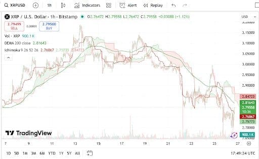 XRP Price Prediction has been closely watched as Ripple’s token goes through yet another volatile phase. XRP currently trades at $2.75, a 2.17% daily loss and its market cap is $164.4 billion, with trading volume growing 18.61% to $9.29 billion.