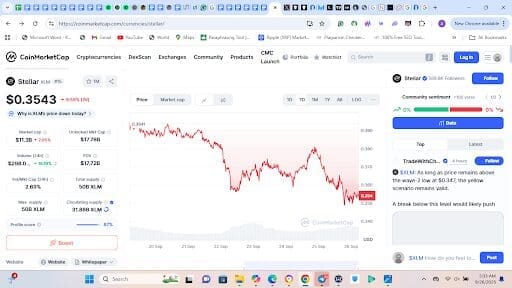 The XLM price reached $0.93 during the 2018 bull cycle. However, according to CoinMarketCap, it has declined by 62%, currently hovering around $0.35. Also, recent price actions have been unimpressive—a 10% dip on the weekly timeframe.