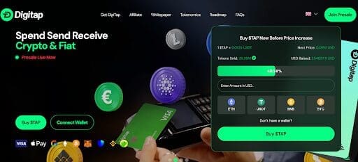 Digitap offers more than hype, positioning itself as the world’s first omni-bank with a token that combines staking and deflationary supply mechanics. Its focus on payments and integrations with global platforms like Visa and Apple Pay gives it a clear pathway to adoption. It already has a working product for payment that can be used today, a rarity in the presale world.