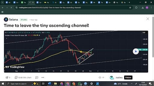 Solana (SOL) changes hands near $218.96 with high on-chain activity and developer velocity. Forecasters talk about a possible march toward $400 if institutional inflows and ETF chatter firm up. Near term, the $192 to $200 region has been sticky, so confirmation matters.