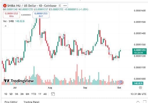 Shiba Inu Coin is currently trading at $0.00001252, a 2.38% gain on the day. Its market cap of $7.43 billion and trading volume of $229.13 million indicate that holders are once again interested.