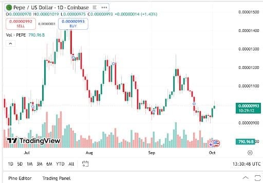 In the same way, PEPE’s price has climbed 4.38% to $0.00000992, with a market cap of $4.21 billion and volume of $616.92 million, indicating greater liquidity on decentralized exchanges.