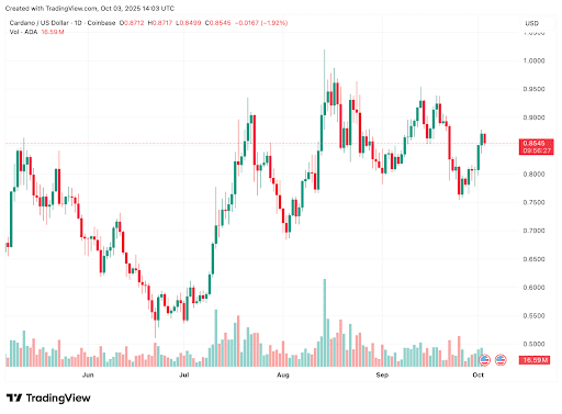 Cardano price is currently $0.8545. In recent Cardano news, ADA has gained attention following the accumulation of whales and institutional signals in late 2025. Approximately 70 million ADA tokens were purchased by large holders, which helped support the price. Analysts also noted that ADA returned to a NASDAQ-linked ETF, testing a key resistance zone and signaling renewed institutional interest.