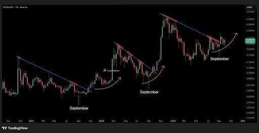 Dogecoin news also points to seasonal trends, with the meme coin historically bottoming in September before rallying in October. According to analysts, this year looks no different as DOGE has already broken resistance and successfully retested key levels.