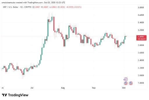 XRP has managed to reclaim the $3 level, showing signs of strength after weeks of sideways movement. The XRP price prediction talk remains focused on whether this breakout can sustain as momentum begins to build. Recent trading shows consistent closes above $3, signaling renewed interest from buyers who had been waiting for a clear direction.