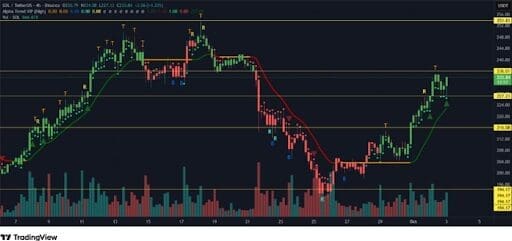 Solana is trading in the $200–$230 range and has become one of the most talked-about altcoins this season. Analysts suggest it could soon break higher, with forecasts pointing toward $250–$300 in Q4. A major boost came from institutional inflows, with over $12 million entering Solana ETFs on launch day