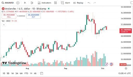 Avalanche is trading at $30.19 with a market capitalization of $12.88 billion and a $1.08 billion trading volume, decreasing 19.15% in one day. Regardless of this drop, AVAX is an important blockchain for decentralized applications and DeFi apps. It has low gas fees and robust infrastructure, attracting developers and investors seeking scalable alternatives.