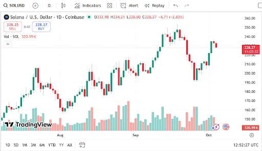 Solana at $228.25 boasts a market cap of $124.75 billion with a trading volume of $8.2 billion in one day. Although down 1.02% in the last 24 hours, SOL is among the most rapidly increasing crypto assets and is standing firm. Its use in NFTs, games, and future financial applications is the reason that it continues to create long-term interest.