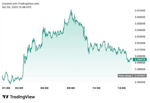 XRP is currently trading around $2.99, and analysts predict that with favorable regulation and regular cross-border usage, XRP might rise to $5 by early 2026. Ripple’s continued expansion into global payment corridors coincides with increased demand for blockchain settlement solutions, which is predicted to grow dramatically over the next two years.