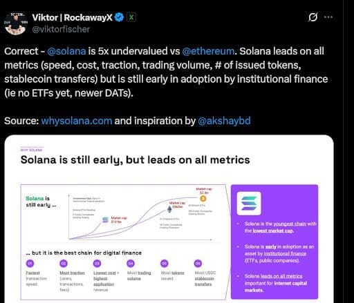 With its robust fundamentals in place, Solana remains attractive to investors worldwide. The network outperforms Ethereum on almost every major performance metric, yet many analysts still think SOL is underpriced given its capabilities.