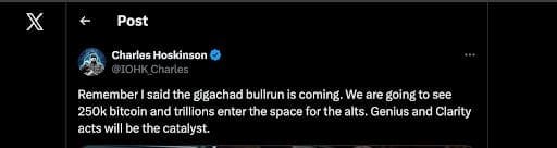 The community remains upbeat, with 88% of Cardano followers staying bullish on near-term prospects. Founder Charles Hoskinson has even predicted a “gigachad bull run,” driven by new U.S. legislation such as the GENIUS Act and the upcoming CLARITY Act, which could unlock more capital from traditional markets.