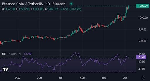 BNB has fired up again. The coin trades between 1042 and 1243 after a sharp 21.7% jump in 7 days. The 1 month gain is 42.3%, and the six month rally stands at a huge 118.2%. The move puts BNB well above short and long averages, grabbing fresh attention.