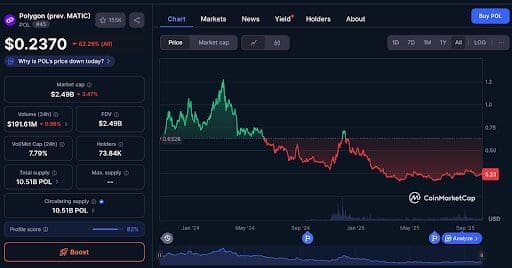 Heading into Q4, Polygon stands out as a high-utility project with a strong development roadmap. Its combination of infrastructure depth and retail accessibility makes it one of the most balanced assets on the market. Priced at $0.23, it is trading at a low during the present bull market. Analysts cite a potential undervaluation for this token.