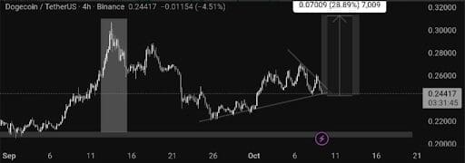 Dogecoin is back on watch. After the last breakout, the price has been riding an ascending trendline and now sits in a neat falling wedge on the 4H chart. If Dogecoin breaks out, traders eye a move toward $0.31, about the same gain we saw in mid-September. Momentum is cooler, but structure still looks bullish, and the setup has that classic Dogecoin feel.