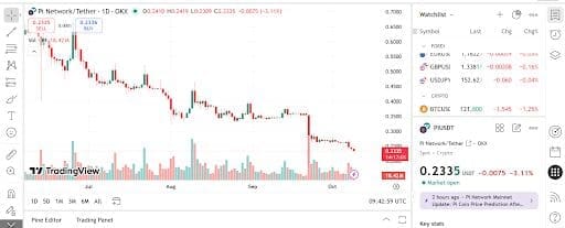 Pi is currently trading at $0.23, and analysts are looking at a possible upside target near $0.50 if mainnet activation occurs and adoption improves. Some forecasts remain bullish; projections to $1 or higher exist if developer activity intensifies and utility grows. Given the volatility and uncertainty of adoption timing, Pi’s path remains speculative in the near term.