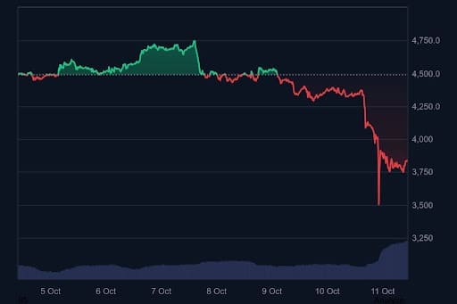 Ethereum took a bigger hit, losing over 12% to around $3,800 after going down to almost $3,400 on Friday. The drop came after many long liquidations and after news of tariffs tokers out.