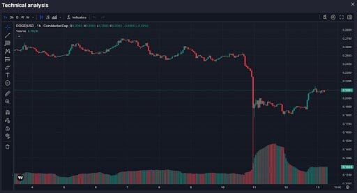 Dogecoin currently trades at $0.1932 with a 24-hour trading volume of $11.1 billion, down significantly from levels seen before Trump’s tariff announcement hit the market last week.