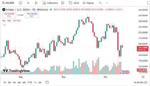 Solana Price Prediction sentiment has grown increasingly more bullish in the past 48 hours. The token is trading now at $193.53, up 6.67% over 24 hours, with market cap at $105.5 billion and trading volume at $11.96 billion, or 26.27% growth.