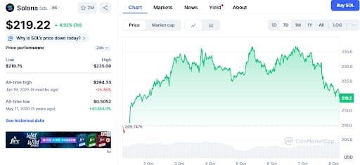 At the time of writing, the Solana coin is in an uptrend. Following a 4% gain on its weekly chart, the Layer-1 coin trades above $210. Is a new ATH on the table?