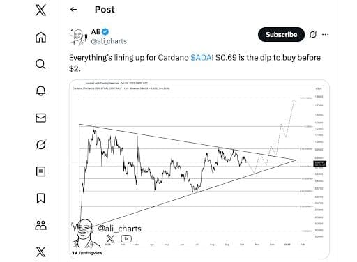 Market expert Ali Martinez believes Cardano could soon rise toward $2 if it clears the $0.9 mark. Another analyst, Dan Gambardello, agrees, adding that even if ADA dips to $0.60, it may rebound toward $1.5 in the next phase of recovery.