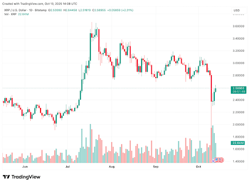 Zooming out, a steady base above $2.50 keeps the structure healthy. For a stronger XRP price prediction, watch for higher lows on pullbacks and declining exchange inflows from whales. If liquidity thins or the trend line rejects price again, a retest of $2.32–$2.25 is possible before another attempt.