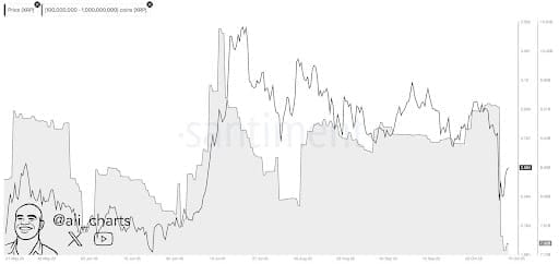 Currently, XRP’s price is trading at $2.46, after dropping from over $3 last week. Yesterday, Ali Martinez, in his XRP price prediction, reported that over 2.23 billion XRP tokens have been sold off since last Friday.