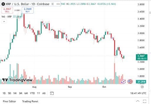 Ripple (XRP) is trading at $2.36, having increased by 3.43% in the past 24 hours. Its market capitalization of $141.71 billion is supported by a 24-hour trading volume of $4.86 billion, a 47.18% decrease from yesterday.