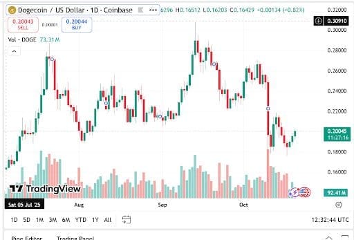 Dogecoin currently trades at $0.20043, increasing 2.95% over the past 24 hours. Its market capitalization stands at $30.33 billion with a trading volume of $2.07 billion, rising 29.62%. This new buying interest shows that traders are once again primed for a possible price rise.