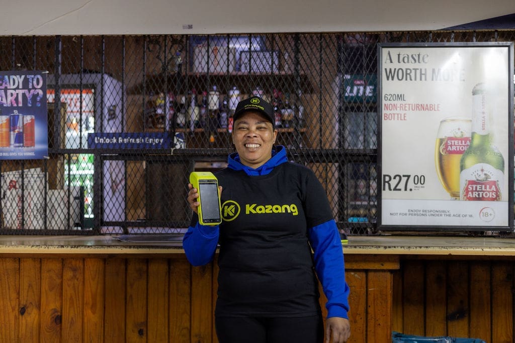 Kazang, for instance, has equipped over 10,000 licensed taverns with these multi-functional devices. Each terminal is a business-in-a-box, featuring a scanner, cash drawer, and the ability to accept card payments and sell prepaid services like airtime.