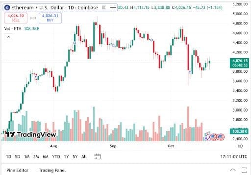 Accumulation by large holders and growth in decentralized finance applications signal sustained strength. Analysts from several trading desks have reaffirmed mid-term targets above $4,500, anticipating a renewed rally before November.