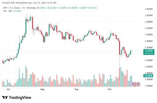 XRP continues to show resilience despite turbulence. It’s currently trading above the key $2.50 level as institutional developments and legal clarity boost sentiment.