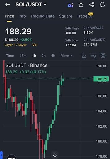 The Solana price action remains bullish, with the asset recovering from the $177 support level and regaining bullish momentum. The recovery has reasserted SOL’s short-term leadership, and it will break out at any moment if current market conditions hold.